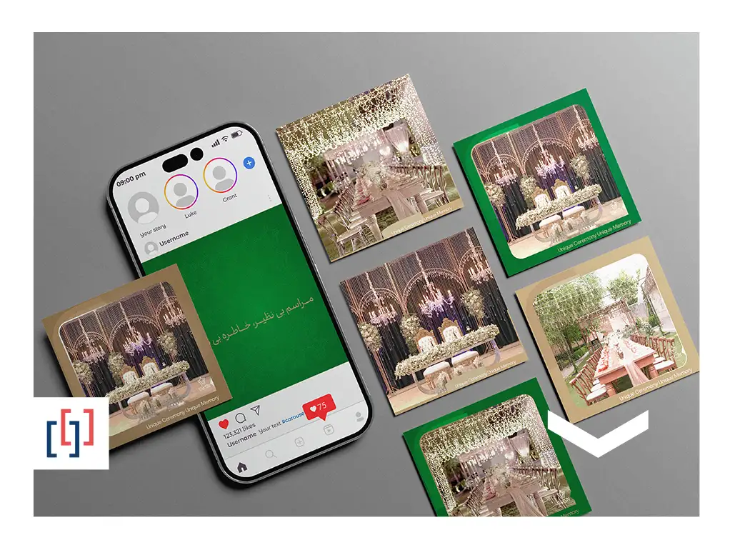 تیم کروشه برای برند تکسین، فعال در زمینه تشریفات عروسی و خدمات مرتبط، لوگو، بروشور و محتوای شبکههای اجتماعی طراحی کرد تا هویت بصری حرفهای، جذاب و متمایز این برند تقویت شود.